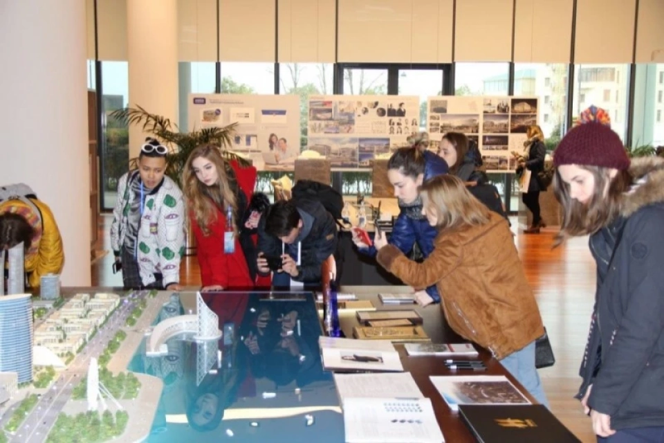 As part of the visit, a tour of the Baku White City project was organized for the students. Here, the participants of the "Winter School" were informed about the analysis of transport, infrastructure, and construction indicators of big cities in the design process of the architectural offices that created the White City project. The students were presented with posters depicting the areas of the historic Kara city polluted by oil waste. The questions they were interested in were answered by the project experts.