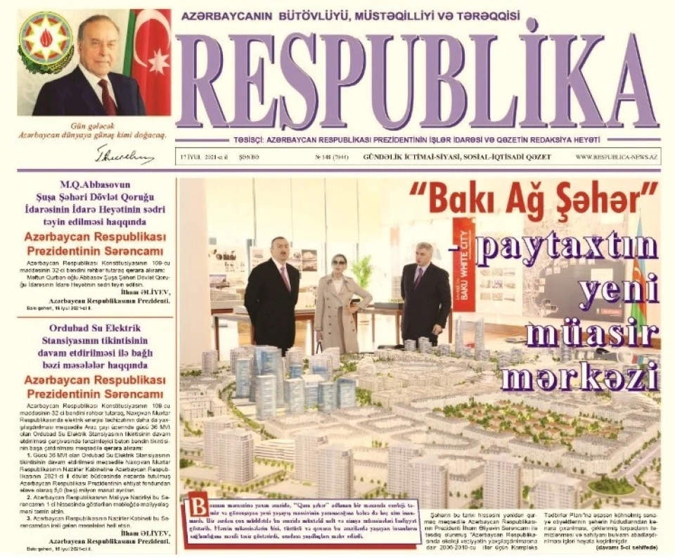 24 dekabr 2011-ci il tarixdə Prezident İlham Əliyev tərəfindən müasir dünyanın ən iri və möhtəşəm şəhərsalma layihələrindən biri olan “Bakı Ağ Şəhər”in təməli qoyuldu.